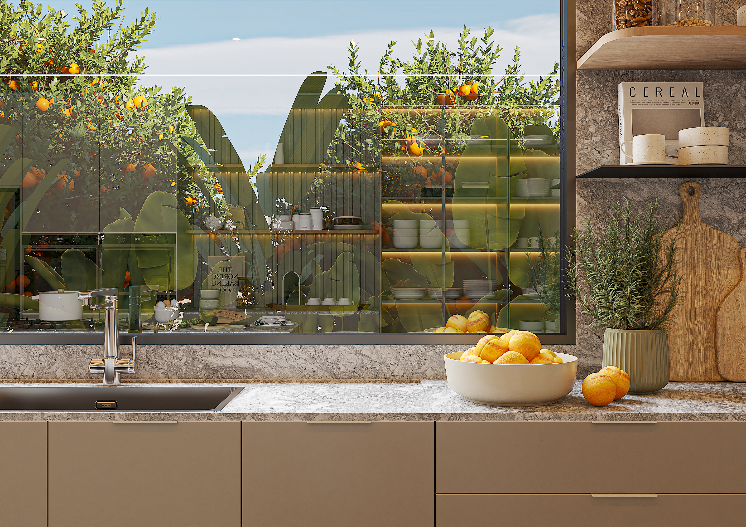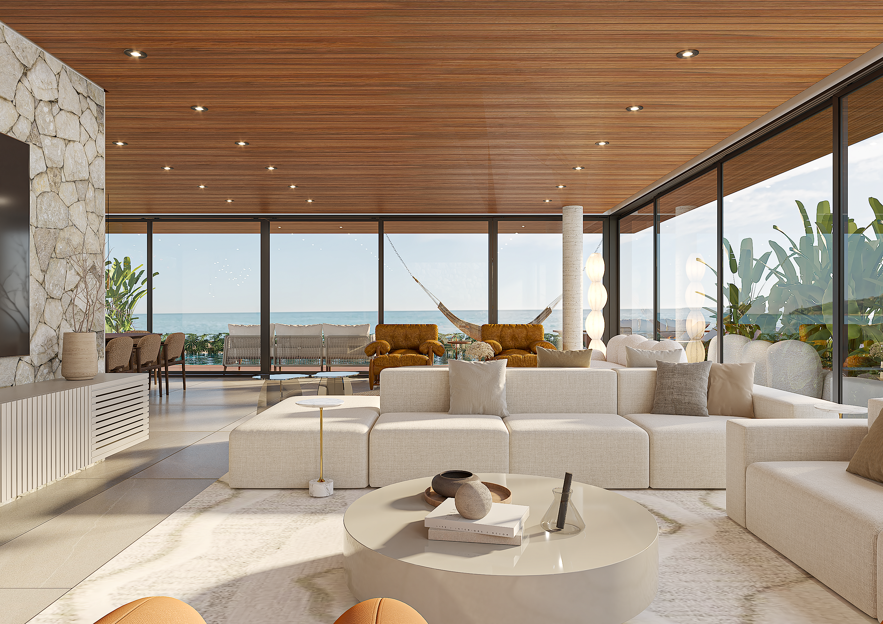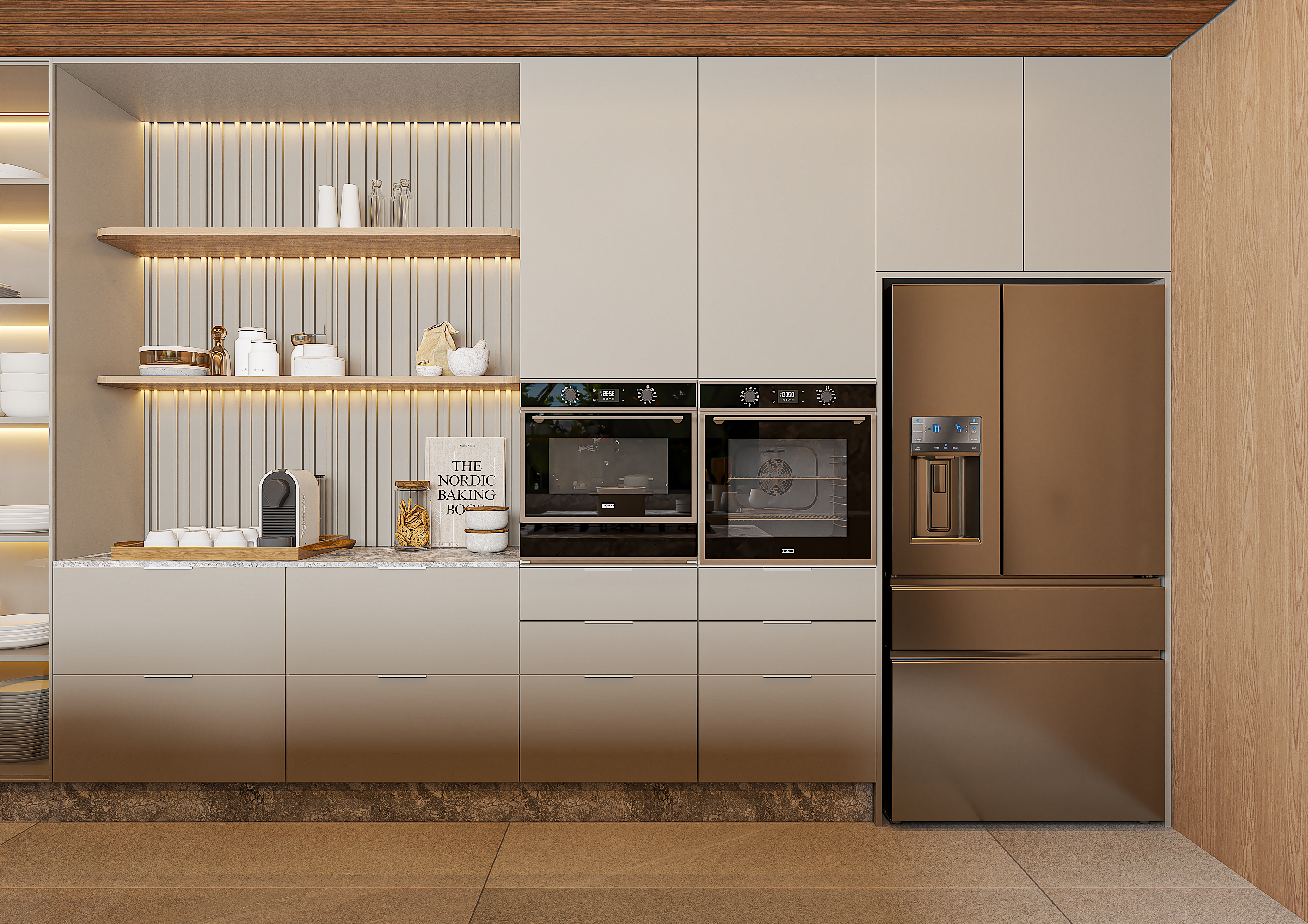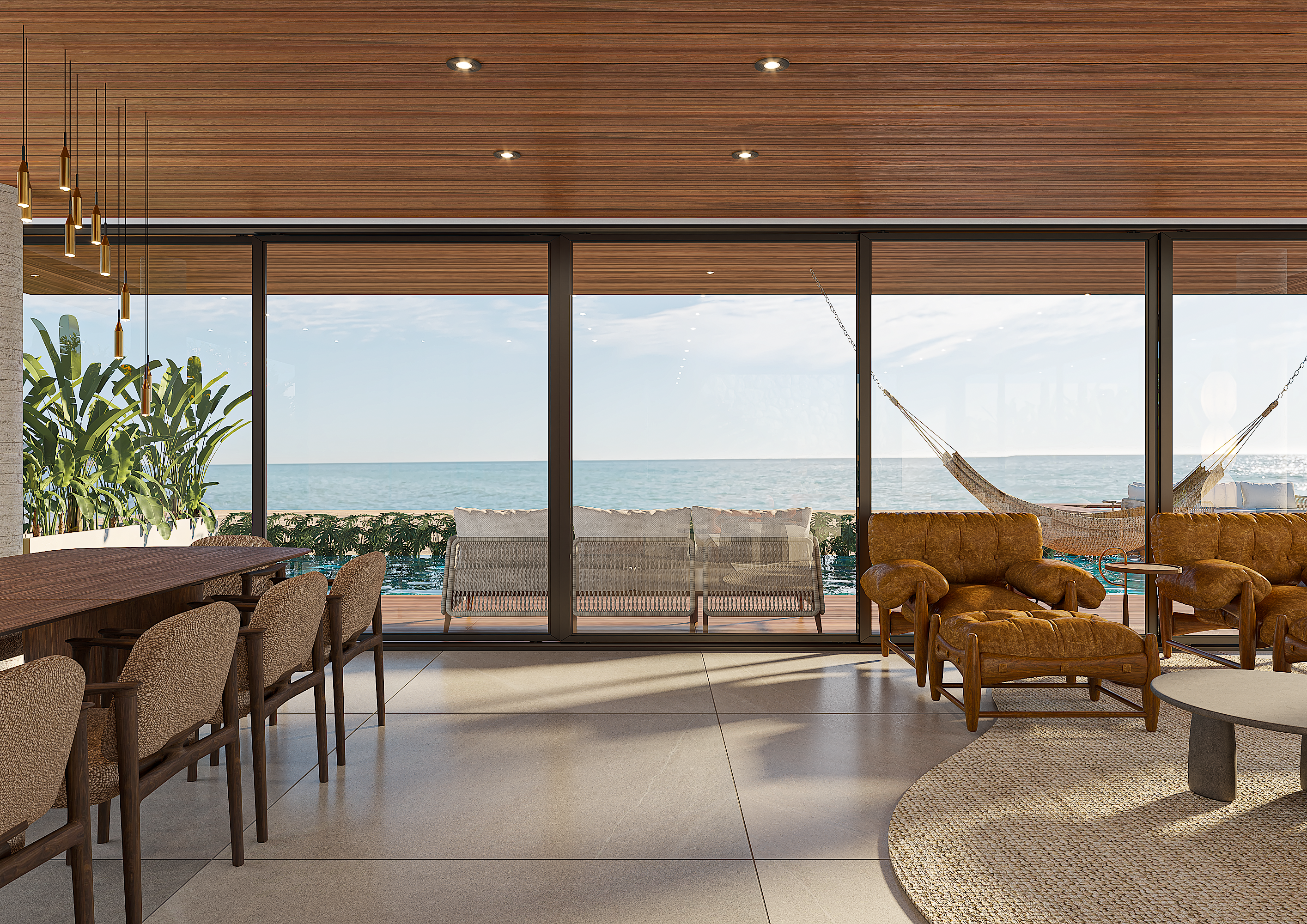 Os produtos Todeschini, explorados em painéis, portas, prateleiras, modulações, frentes e espelhos, reforçam a sofisticação e a versatilidade do espaço. Inspirado na arquitetura contemporânea brasileira, o projeto valoriza materiais naturais e atemporais.
