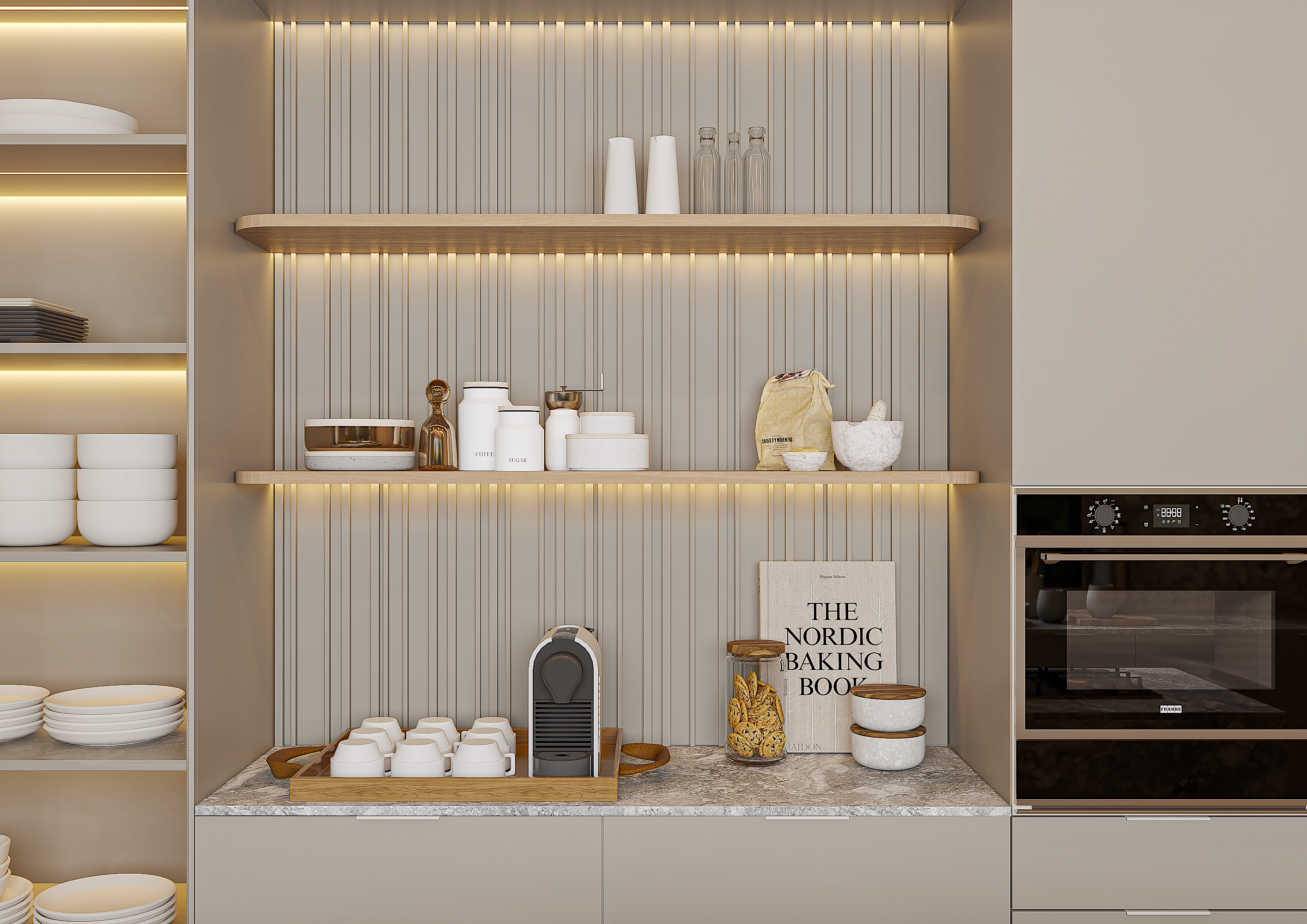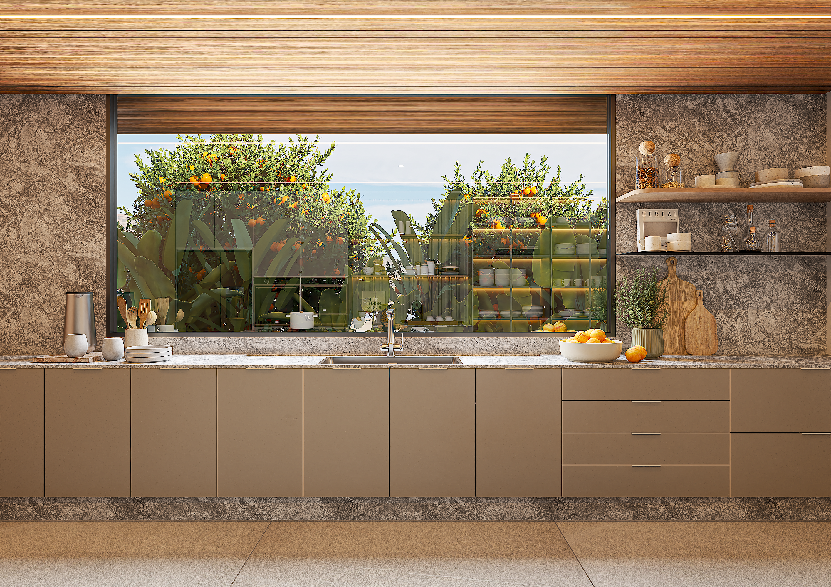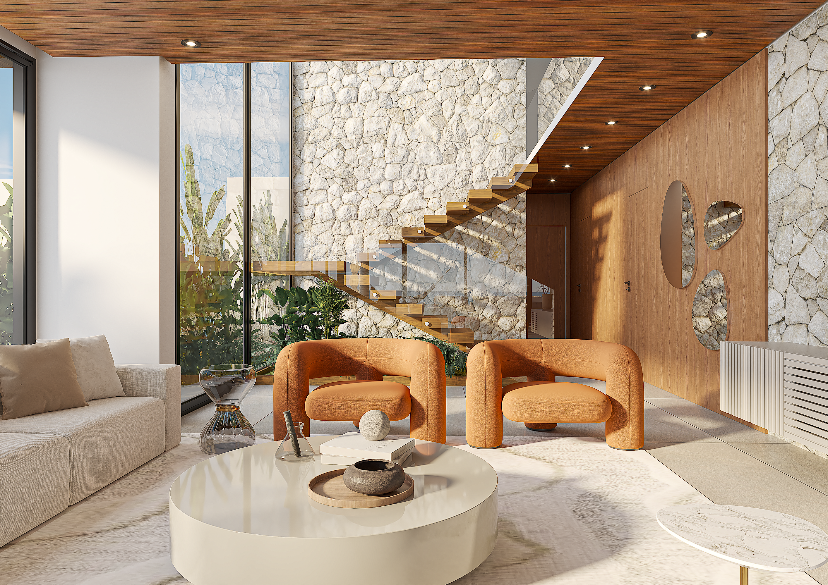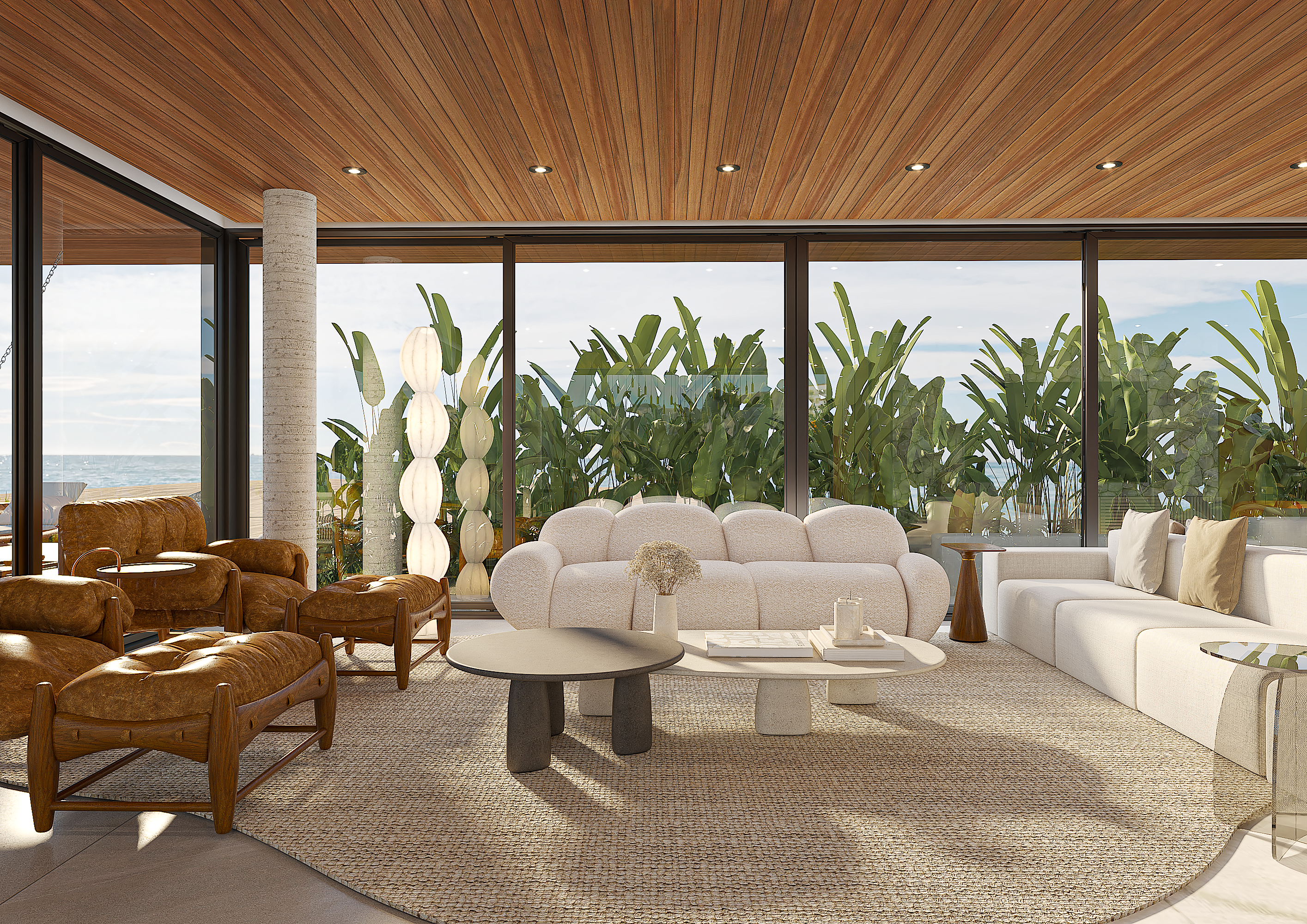 Os produtos Todeschini, explorados em painéis, portas, prateleiras, modulações, frentes e espelhos, reforçam a sofisticação e a versatilidade do espaço. Inspirado na arquitetura contemporânea brasileira, o projeto valoriza materiais naturais e atemporais.